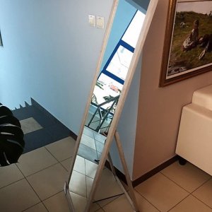 Rewelacyjne lustra stojące w skandynawskim stylu. Świetnie sprawdza się w klasycznych jak również nowoczesnych wnętrzach. Wykonane w stabilnej wysokogatunkowej ramie wraz z podpórką w tym samym kolorze stanowią niepowtarzalny wspaniały akcent dekoracji i niepowtarzalny charakter wystroju pomieszczenia. Dla zwiększeni bezpieczeństwa użytkownika plecy wzmocnione płytą HDF stabilizując całą konstrukcje.